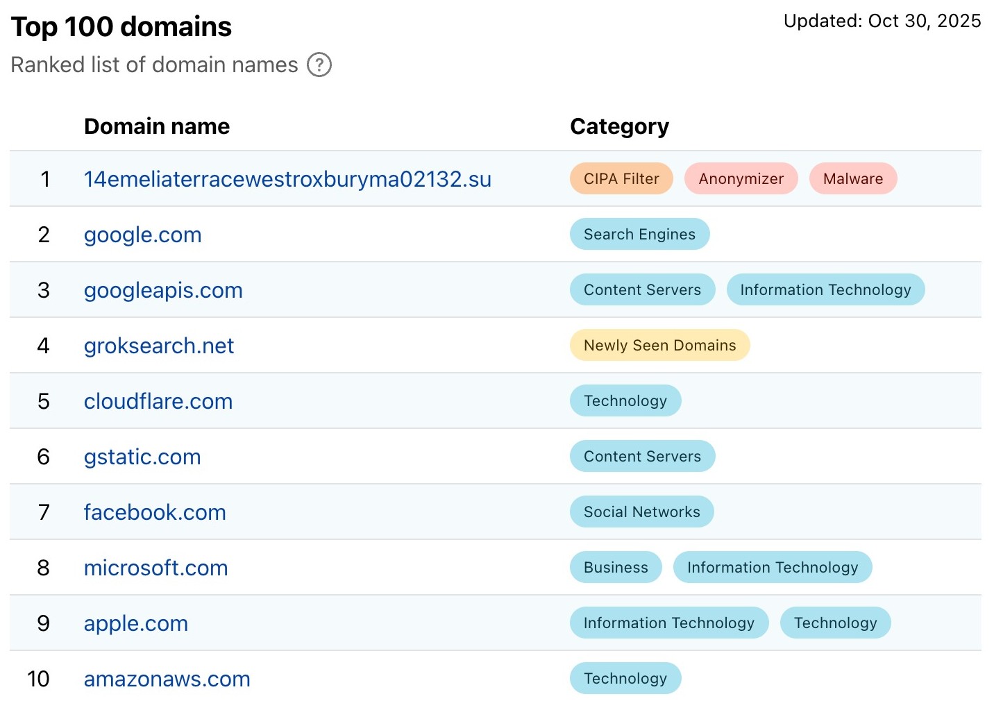 По данным экспертов, с 19 по 22 ноября текущего года один из управляющих серверов Kimwolf (14emeliaterracewestroxburyma02132[.]su) возглавил топ-100 доменов Cloudflare по активности, опередив даже Google.