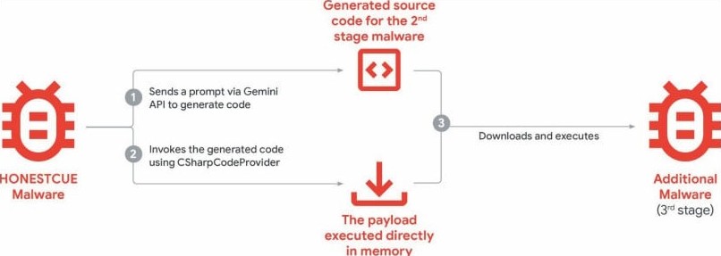 Загрузчик HonestCue, в свою очередь, представляет собой PoC-фреймворк, который использует Gemini API для генерации кода на C# для второй стадии малвари, а затем компилирует и исполняет пейлоады в памяти.
