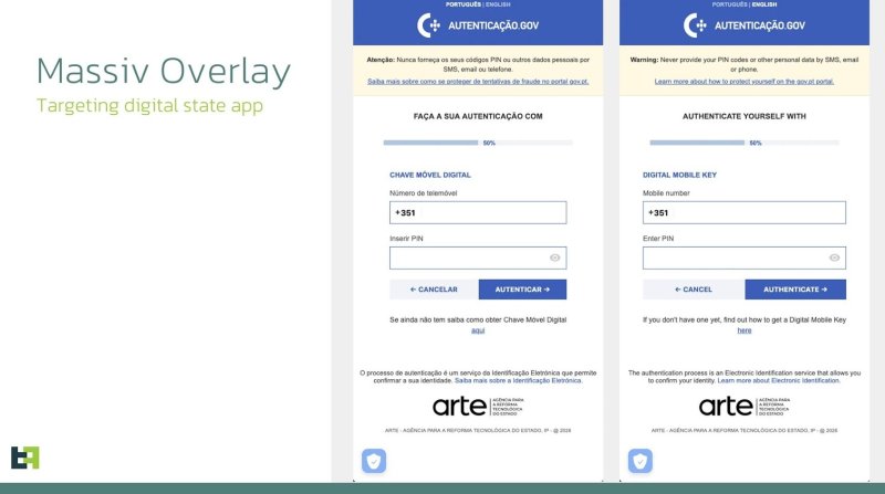 Отмечается, что одна из кампаний была направлена на gov.pt — португальское приложение для госуслуг, где оверлей выманивал у жертв номер телефона и PIN-код (вероятно, для обхода KYC-верификации). Также исследователи зафиксировали случаи, когда перехваченные данные использовались для открытия банковских счетов на имя жертв — ради отмывания денег или получения кредитов.