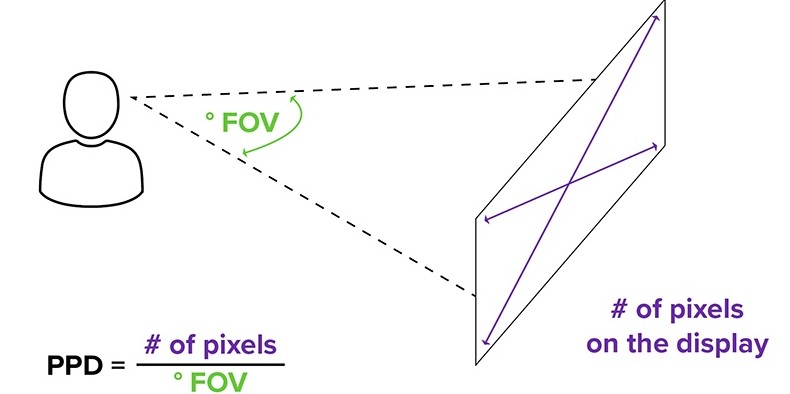 Исследователи создали экспериментальную установку, которая позволила им точно измерить то, что видит человеческий глаз, глядя на узоры на экране. Вместо измерения характеристик конкретного экрана они измеряли количество отдельных пикселей, помещающихся в один градус поля зрения (PPD). Этот параметр вместо ответа на вопрос «какое разрешение у этого экрана?» отвечает на вопрос «как выглядит этот экран с моего места?».
