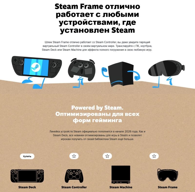 Valve также распространяет набор разработчика Steam Frame среди отдельных студий для улучшения совместимости как с VR-, так и с обычными играми. Стоимость Steam Frame пока не сообщается.