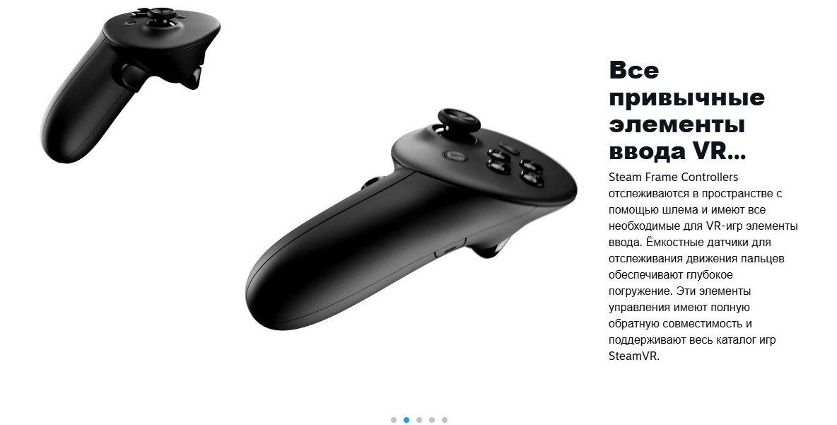 Новинка поставляется с комплектными контроллерами Steam Frame Controller. Каждый контроллер оснащён кнопками ABXY, крестовиной, магнитными стиками с ёмкостным сенсором, аналоговыми триггерами, бамперами и двухпозиционными кнопками захвата, а также тактильными функциями и системой отслеживания пальцев. Каждый контроллер весит 130 г и работает от одной батарейки типа AA около 40 часов.