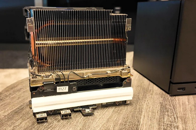 В основе Steam Machine — центральный процессор AMD на архитектуре Zen 4 с шестью ядрами и двенадцатью потоками, работающий с тактовой частотой до 4,8 ГГц при энергопотреблении всего 30 Вт (TDP). Чип дополнен 16 Гбайт оперативной памяти DDR5 и твердотельным накопителем NVMe на 512 Гбайт в базовой версии или 2 Тбайт в старшей. SSD используется стандартный — M.2 2230, так что при желании его не составит труда заменить на более ёмкий. Оперативная память, к слову, также заменяема — применены планки SO-DIMM, однако добраться до них не так просто: придётся разобрать всю систему.
