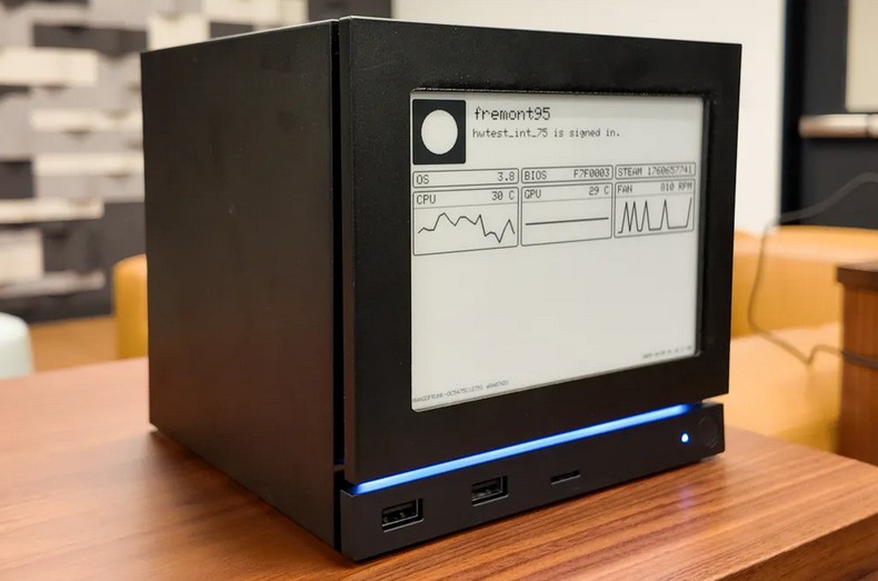 Фронтальная панель корпуса съёмная, что облегчает чистку и даёт пространство для кастомизации. Valve экспериментирует с различными декоративными решениями — от деревянных накладок до тематических версий и вариантов с E Ink-дисплеем. Также в корпус встроена индикаторная светодиодная полоса, которую можно настроить на отображение загрузки игры, уведомлений или просто отключить.