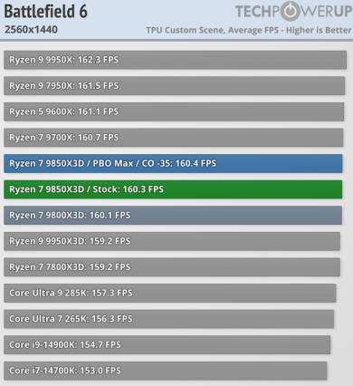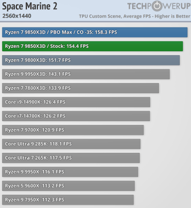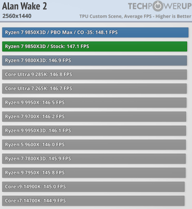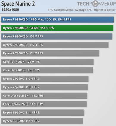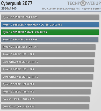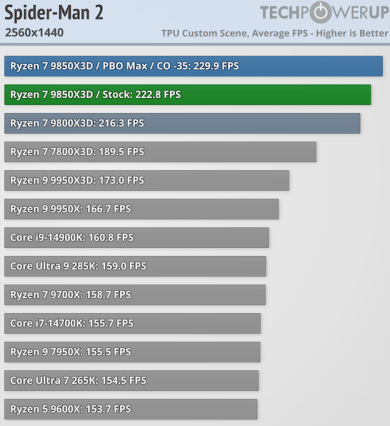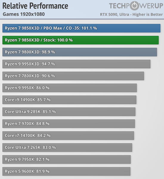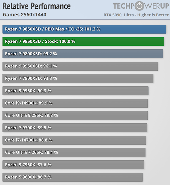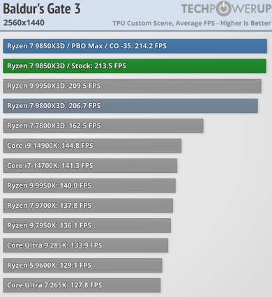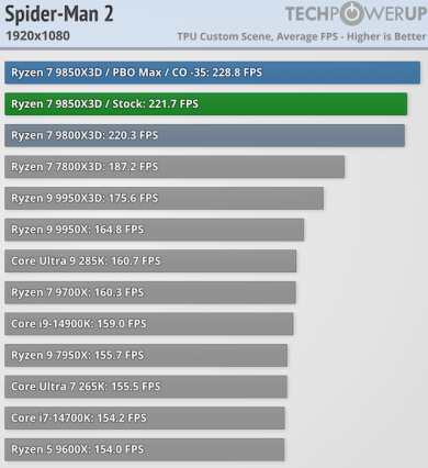 Игровая производительность Ryzen 7 9850X3D впечатляет — она превосходит все остальные процессоры на рынке, включая Ryzen 7 9800X3D. Хотя разница с последним невелика и составляет в лучшем случае 2,5 % и всего 0,5 % при разрешении 4K, по данным TechPowerUp.