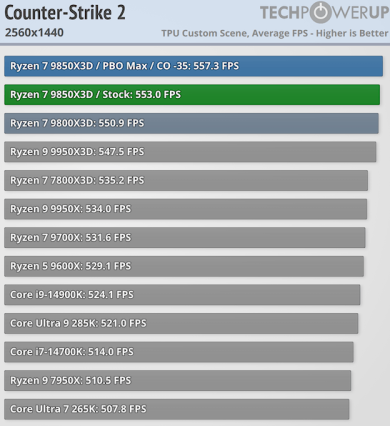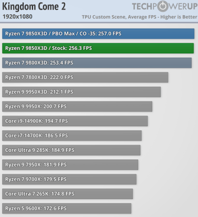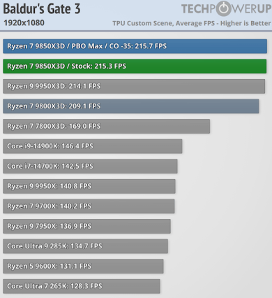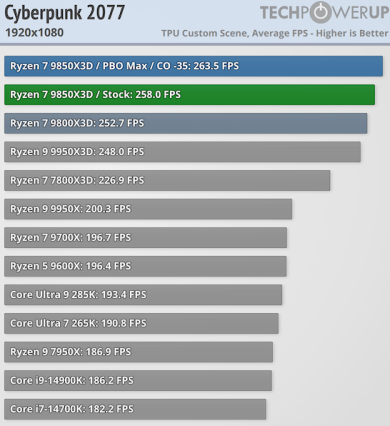 Tom’s Hardware сообщает о росте производительности в среднем на 3,3 % и на 30 % увеличенном энергопотреблении по сравнению с Ryzen 7 9800X3D.